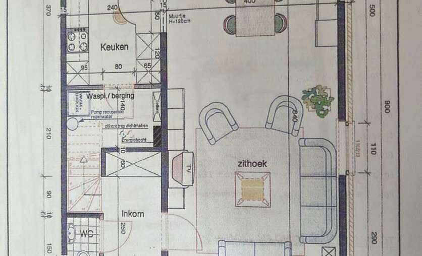une maison avec hall d’entrée et WC séparé, spacieux séjour avec cuisine ouverte, buanderie, hall de nuit, 3 chambres et salle de bains,