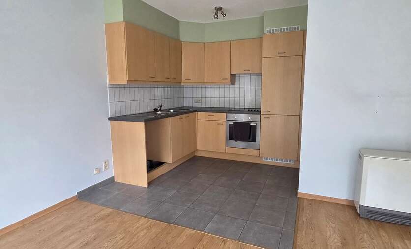 Het appartement is gelegen op de gelijkvloerse verdieping, is een lichtrijk appartement en omvat: Inkom, een living met eetplaats en open keuken en een schuifdeur met toegang tot het gezellig terras (11.51m²).