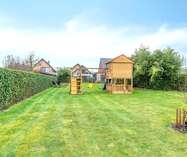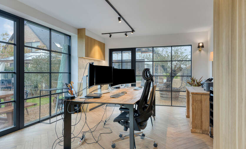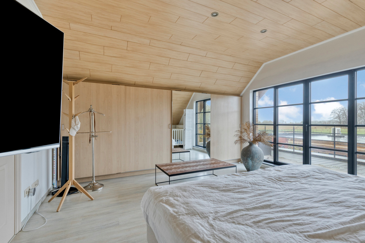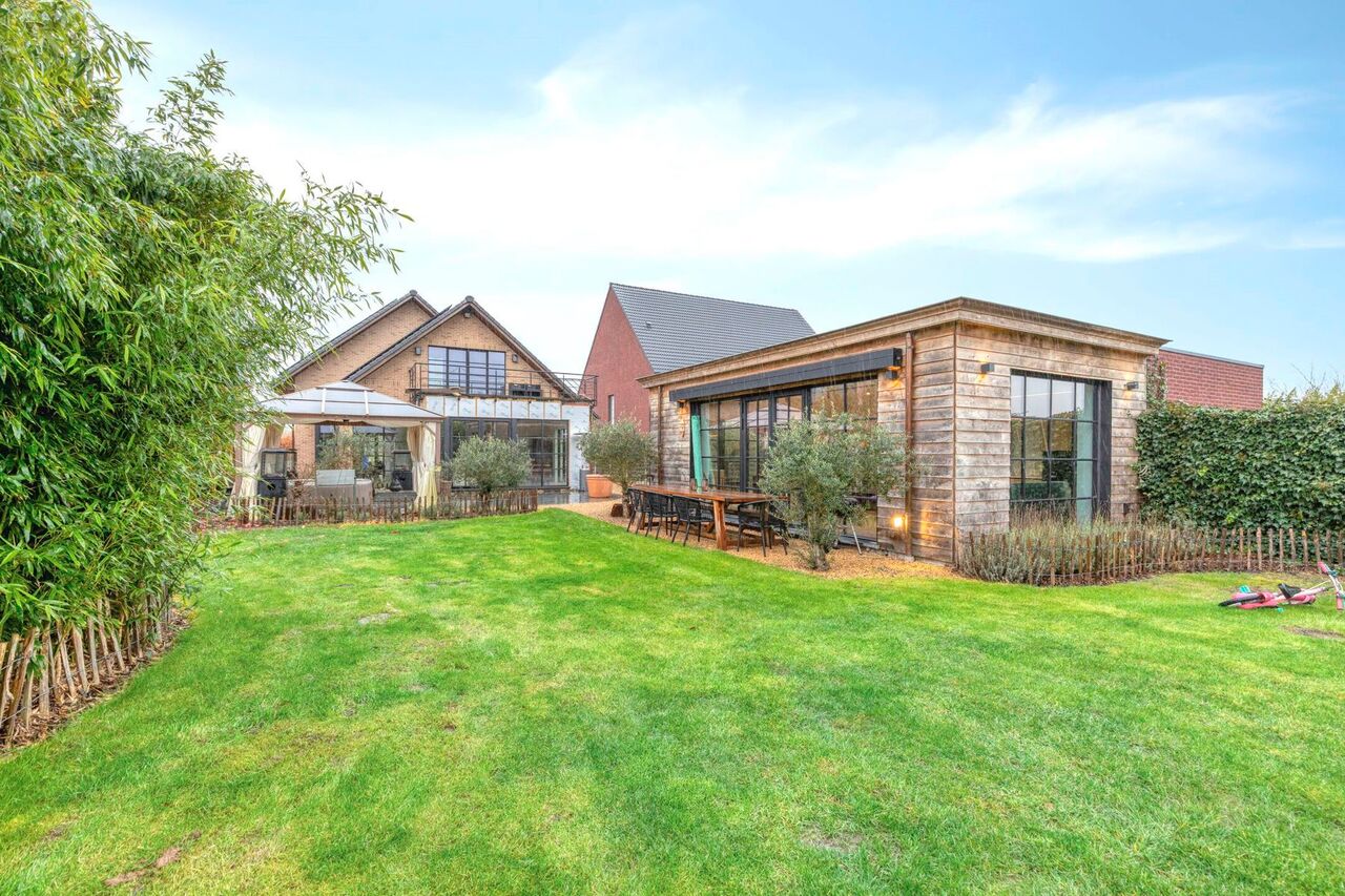 Buiten wordt het gevoel van ruimte verder doorgetrokken met een brede oprit die plaats biedt aan meerdere wagens en een aangename tuin met een ingerichte tuinkamer van ca. 35 m² — ideaal als hobbyruimte, kantoor of ontspanningsplek.