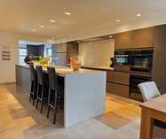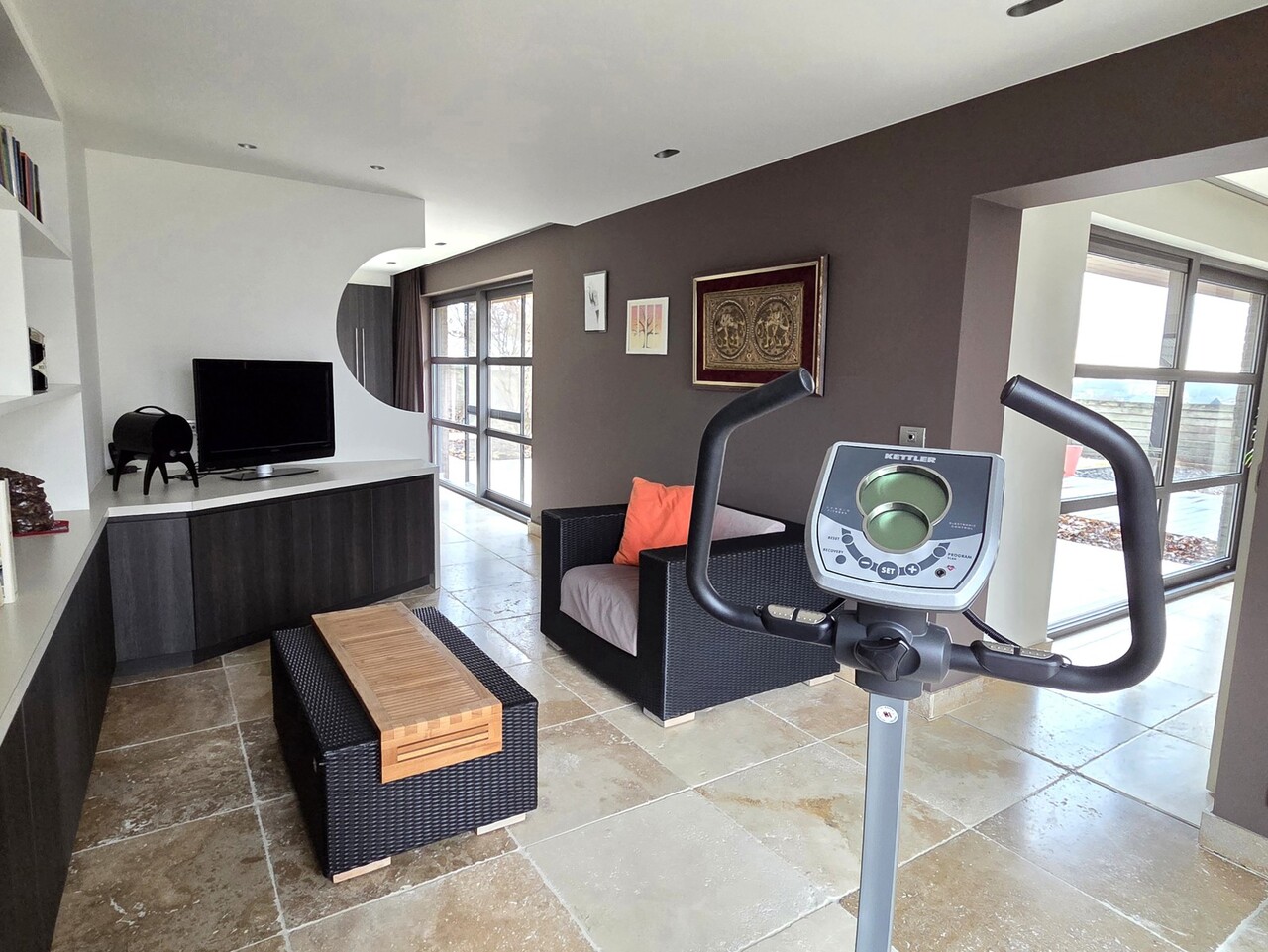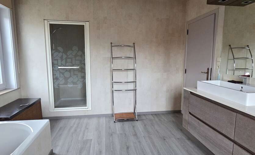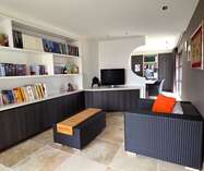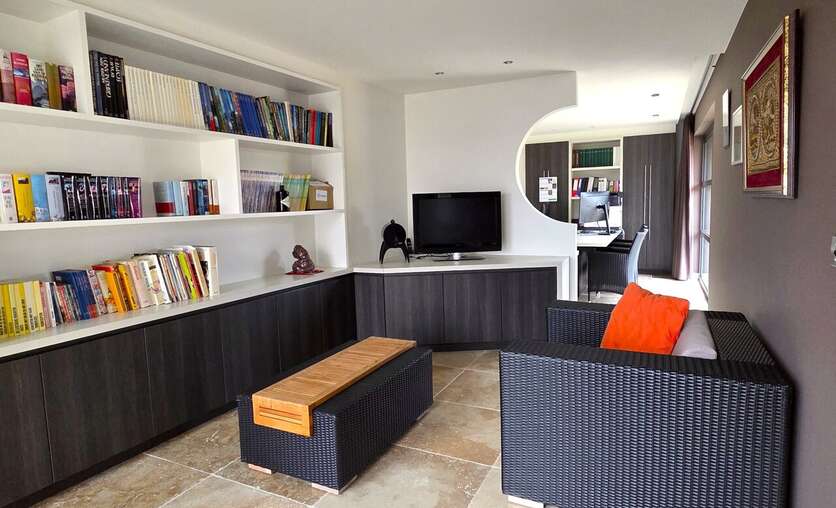 De woonkamer en het bureaugedeelte zijn voorzien van inbouwkasten en de gebruikte materialen ademen kwaliteit. De keuken is hyper-uitgerust en straalt klasse uit.